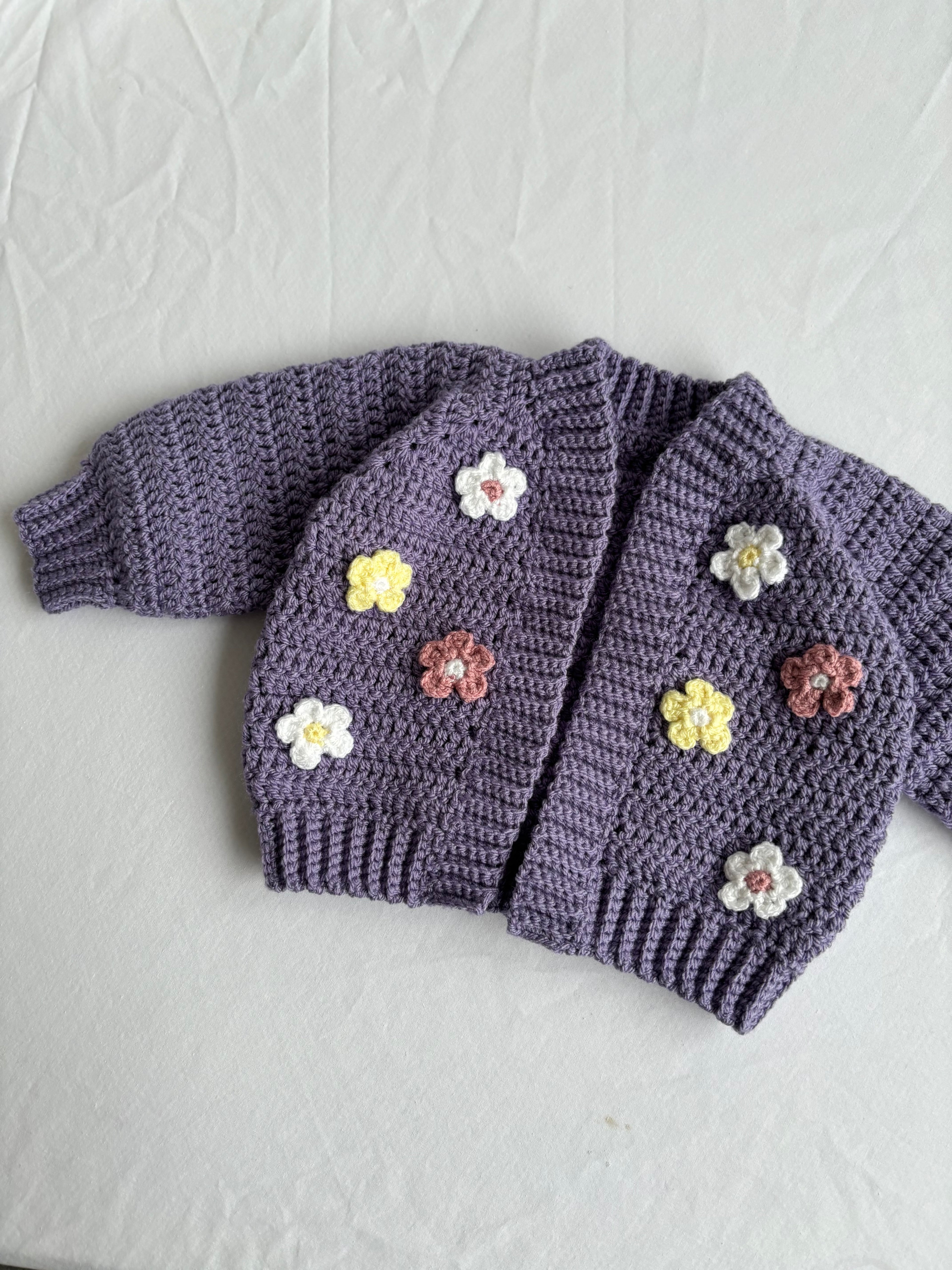 Handmade Crochet Duck and Wildflowers Embroidered Sage Green Cardigan