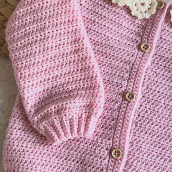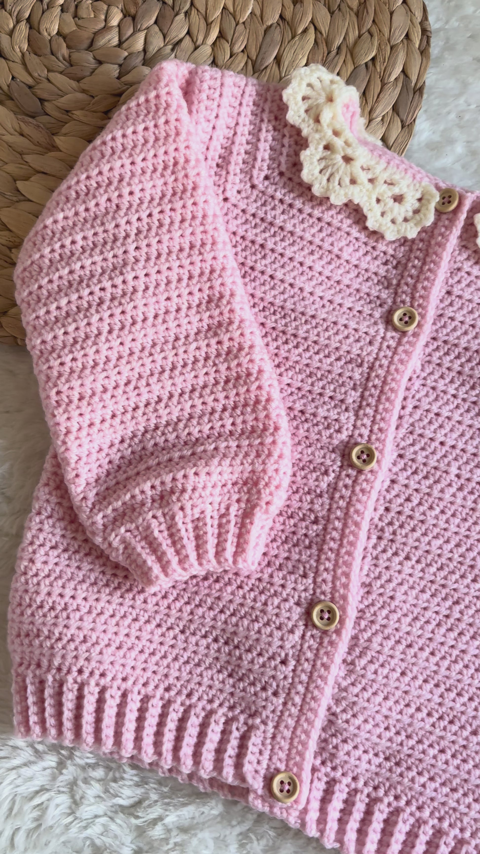 Handmade Crochet Princess Pink Lace Collar Cardigan