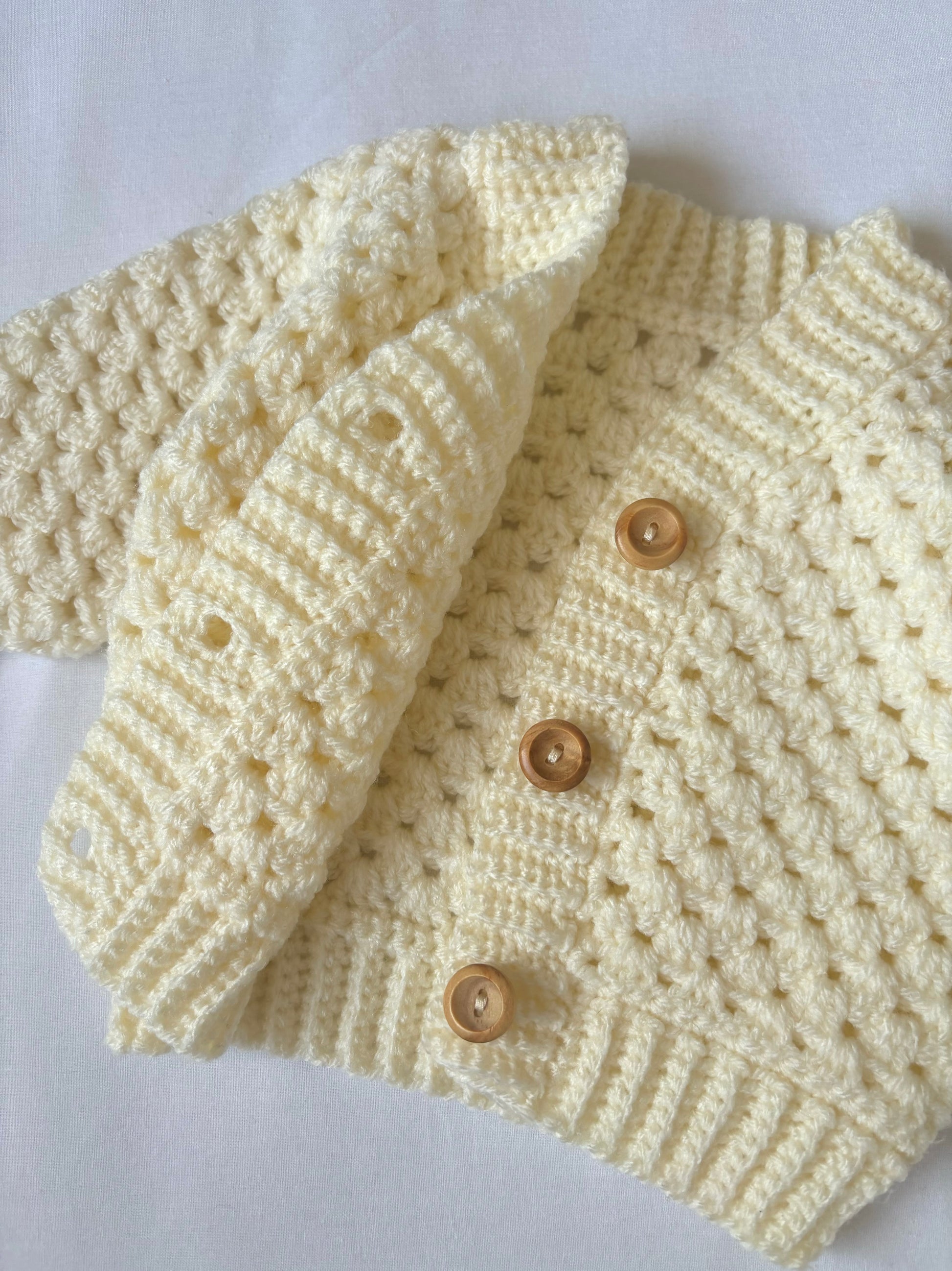 Handmade Crochet Vanilla Cream Baby Cardigan